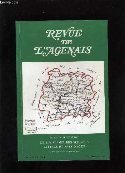 Sommaire : Les architectures mégalithiques de la région Néracaise par Marc Devignes, Parallèle sommaire des Amphithéatres Romains d'Agen et de Bordeaux par Renaud Dufilho, Saint Avit de Lacapelle Biron et le mythe du lieu de naissance de Bernard Palissy par Lucile Bourrachot, Le sénateur Depère par Pierre Allouis Classification Dewey : 908.447-Régionalisme : Aquitaine