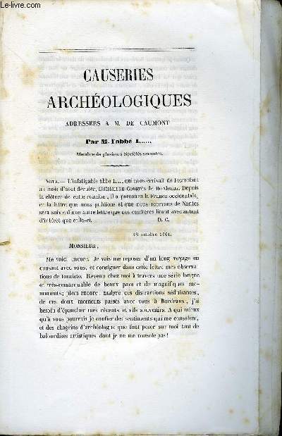 SOCIETE FRANCAISE D'ARCHEOLOGIE. 1862. In-12. Broché. Bon état, Couv. convenable, Dos satisfaisant, Intérieur frais. Paginé de 41 à 56.. . . . Classification Dewey : 930.1-Archéologie