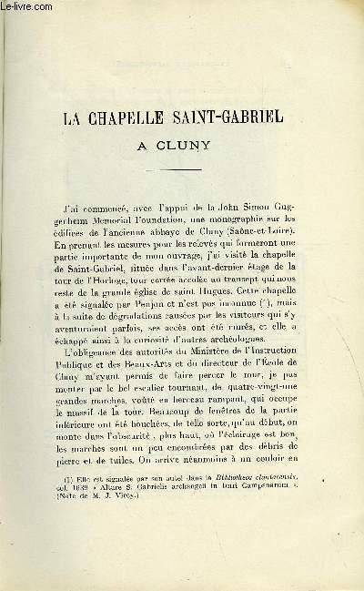 Publication trimestrielle. Sommaire : L'EGLISE DE DONNEMARIE-EN-MENTOIS (SEINE-ET-MARNE) PAR MME LA MARQUISE DE MAILLE, L'EGLISE SAINT-GERMAIN DE CHARONNE A PARIS PAR DESHOULIERES, LA CHAPELLE SAINT-GABRIEL A CLUNY PAR KENNETH CONANT, LA RESTAURATION DE LA CATHEDRALE DE SOISSONS PAR EMILE BRUNET, LE PREMIER ART ROMAN PAR H.DESHOULIERES, FOUILLES ET DECOUVERTES A JUMIEGES, LE DEAMBULATOIRE DE L'EGLISE ROMANE PAR G. LANFRY Classification Dewey : 930.1-Archéologie