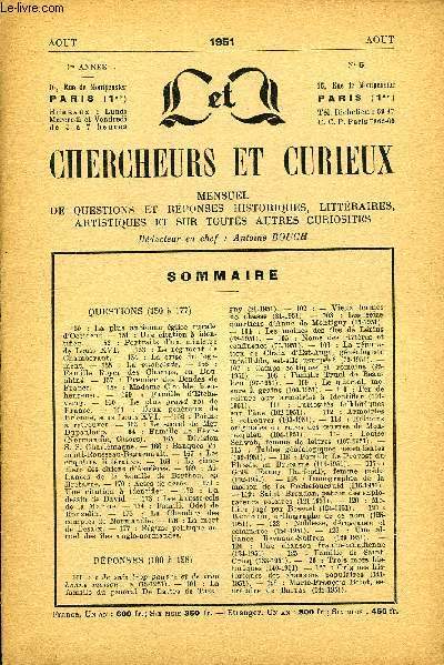 L'INTERMEDIAIRE DES CHERCHEURS ET CURIEUX. AOUT 1951. In-12. Broché. Bon état, Couv. convenable, Dos satisfaisant, Intérieur frais. Questions de 150 à 177. Réponses de 100 à 128. Lecture en colonnes.. . . . Classification Dewey : 1-Le savoir