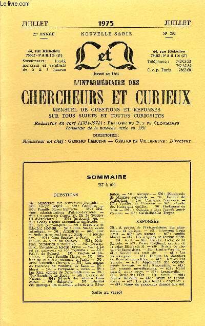 L'INTERMEDIAIRE DES CHERCHEURS ET CURIEUX. JUIL 1975. In-12. Broché. Bon état, Couv. convenable, Dos satisfaisant, Intérieur frais. Paginé de 587 à 690. Lecture en colonnes.. . . . Classification Dewey : 1-Le savoir