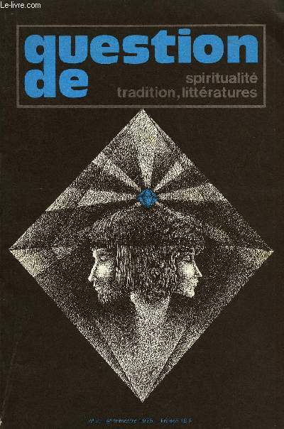 Spiritualité, tradition, littératures. Sommaire : Guides et méthodes de la vie intérieure chrétienne, Marie-Madeleine Davy Quatre façons de lire la Bible,Jean Chevalier, Un dojo à Paris : chez le philosophe du Ki Itsuo Tsuda, Claudine Brelet-Rueff, La prophétie fossile, Aimé Michel, L'extraordinaire cas Matthew Manning, Hélène Renard, Les tests de Toronto sur le cas Manning, Peter Bander, Un savant indocile : Rémy Chauvin, Aimé Michel, Un calculateur astronomique de 2000 ans : la machine d'Antikythera, Lucien Gérardin, Le yoga à la mode, par Jean Varenne L'Histoire d'Arnold Toynbee, Islam : les derniers livres parus, par Jean Chevalier Lettre aux Hassidim sur l'extase de Don Baer de Loubavitch La magie de Francis King, etc.Une communauté pythagoricienne; activités de « La Tradition bouddhiste»; une journée pour la défense de la culture; ces « curieux » séminaires humanistes; le centre zen du Taillé; de nouvelles revues; etc. Classification Dewey : 70.49-Presse illustrée, magazines, revues
