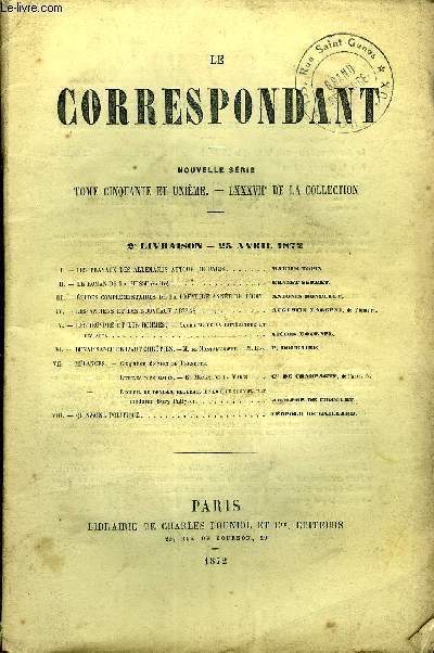 BUREAUX DU CORRESPONDANT. 25 AVRIL 1872. In-12. Broché. Bon état, Couv. convenable, Dos satisfaisant, Intérieur frais. Paginé de 201 à 390. Tampon sur la couverture.. . . . Classification Dewey : 70.49-Presse illustrée, magazines, revues