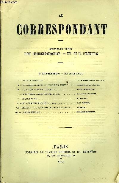 BUREAUX DU CORRESPONDANT. 25 MAI 1873. In-12. Broché. Bon état, Couv. convenable, Dos satisfaisant, Intérieur frais. Paginé de 665 à 852.. . . . Classification Dewey : 70.49-Presse illustrée, magazines, revues