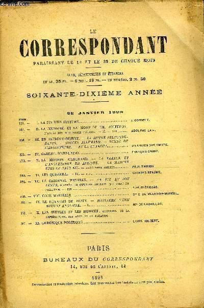Sommaire : I. LA FIN D’UN SYSTÈME. J. CORNÉLY.II.LA JEUNESSE ET LA MORT DE TH. JOUFFROY,d’après des documents inédits. — II. — FIN ADOLPHE LAIR.III.EN EXTRÊME-ORIENT. — LA RUSSIE PRÉPONDÉ-RANTE. — SUCCÈS ALLEMAND. — ÉCHEC DEL'ANGLETERRE. — ET LA FRANCE?. UN ANCIEN DIPLOMATE.IV.GABRIEL D’ANNUNZIO. FRANÇOIS CARRY.V. LA MISSION MARCHAND. — LA FRANCE ET L’ANGLETERRE EN AFRIQUE. — LA MARCHE VERS LE HAUT NIL. — avec deux cartes. PAUL THIRIONVI.LES QUISSERA. — IV. — fin.. GEORGES BEAUME.VII.LE CARDINAL WISEMAN. — SA VIE ET SONTEMPS, d’après UN OUVRAGE ANGLAIS QUI VIENT DEPARAITRE. — FIN.. P.-H, CLÉRISSAC,VIII. COUR MARTIALE. Cte G, DE VILLEBOIS-MAREUIL.IX.LE ROYAUME DE JBÉNIN. — MASSACRE D'UNEMISSION ANGLAISE. — I. Mis DE NADAILLAC,X.LES ŒUVRES ET LES HOMMES, courrier de laLITTÉRATURE, DES ARTS ET DU THEATRE.XI. CHRONIQUE POLITIQUE. .. LOUIS JOUBERT. Classification Dewey : 70.49-Presse illustrée, magazines, revues