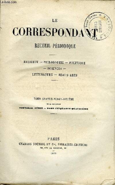 BUREAUX DU CORRESPONDANT. 1873. In-12. Broché. Bon état, Couv. convenable, Dos satisfaisant, Intérieur frais. 1264 + 1292 + 1248 + 1264 pages. Couvertures ne correspondant pas aux ouvrages.. . . . Classification Dewey : 70.49-Presse illustrée, magazines, revues