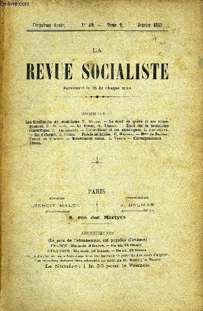 Les Confluents du socialisme, B. Malon. — Le droit de grève et ses conséquences, P. Boilley. — La Force, G. Tridon. — Essai sur le socialisme scientifique, P. Argyriadès. — L’alcoolisme et les alcooliques, E. Fournière. — Cri d’alarme, A. Vebek. — Poésie socialiste, E. Herbel. — Mme de Barrau, Emilie de Morsieu. — Mouvement social, A. Veber. — Correspondance. — Livres. Classification Dewey : 70.49-Presse illustrée, magazines, revues