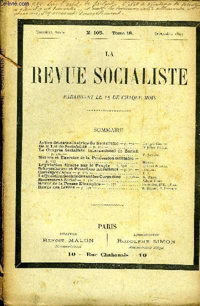 Sommaire : Action décentralisatrice du Socialisme. Georges Ghisler.De la Loi de Sociabilité. Dr Julien Pioger.Le Congrès Socialiste international de Zurich. V. Jaclard.Nature et Exercice de la Profession militaire —. Hamon.Législation directe par le Peuple. Charles Burckli.Schopenhauer et Proudhon moralistes. Frablan.Correspondance. A. J.La Question Socialedevantles Corps élus. A. Delon.Mouvement Social. Adrien Veber.Revue de la Presse Étrangère. Pierre Boz, DrR.j. Beck.Revue des Livres. R. Delons. p. Lagarde. Classification Dewey : 70.49-Presse illustrée, magazines, revues