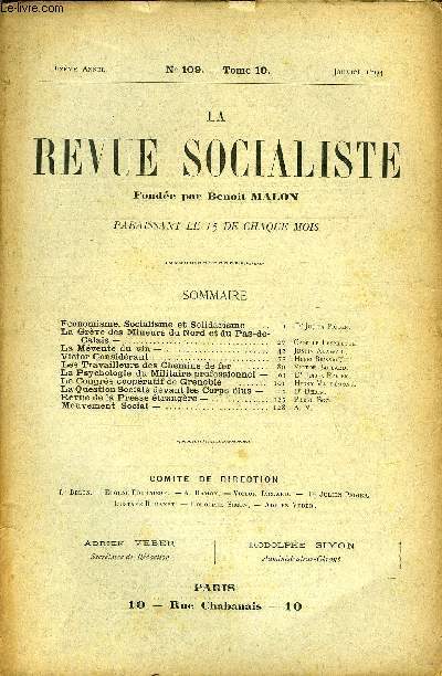 Sommaire : Economisme, Socialisme et Solidarisme — Dr Julien Pioger.La Grève des Mineurs du Nord et du Pas-de-Calais — Camille Lespilette.La Mévente du vin — Justin Alawail.Victor Considérant — Henri Brissac.Les Travailleurs des Chemins de fer — Victor Jaclard.La Psychologie du Militaire professionnel — Dr Julien Pioger.Le Congrès coopératif de Grenoble — Henry Vaudémont.La Question Sociale devant les Corps élus — Dr Delon.Revue de la Presse étrangère — Pierre Boz.Mouvement Social — A. v. Classification Dewey : 70.49-Presse illustrée, magazines, revues