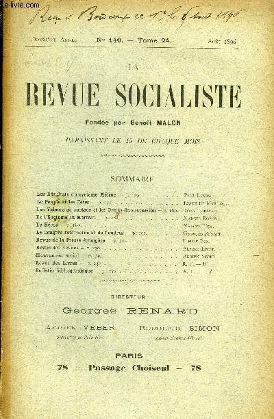 Sommaire : Les Résultats du système Méline - Paul Louis.Le Peuple et les Fêtes — Rioux de Maillou.Les Valeurs au porteur et les Droits de succession — Tony Tardieu.De l’EncLume au Marteau — Marcel Robert.Le Héros — MarcelRéja.Le Congrès International de Londres — Georges Renard.Revue de la Presse étrangère — Pierre Boz.Revue des Revues - Albert Livet.Mouvement social — Adrien Veber.Revue des Livres — R. F. — H.Bulletin bibliographique — A. L. Classification Dewey : 70.49-Presse illustrée, magazines, revues