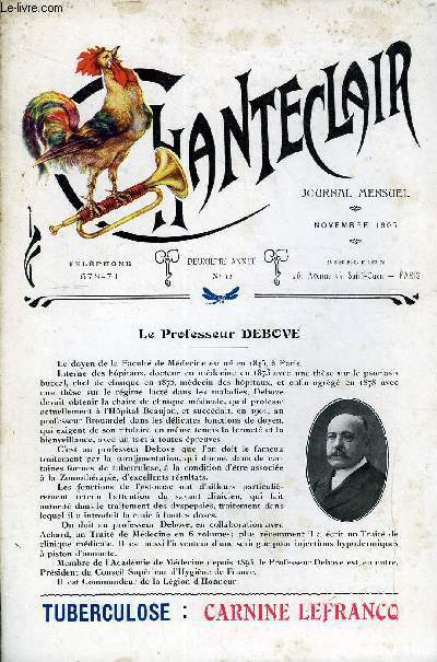 CARNINE LEFRANCQ. NOVEMBRE 1907. In-12. Broché. Bon état, Couv. convenable, Dos satisfaisant, Intérieur frais. 8 pages. Biographie et caricature hors texte en couleur du professeur Debove.. . . . Classification Dewey : 70.1-Journaux