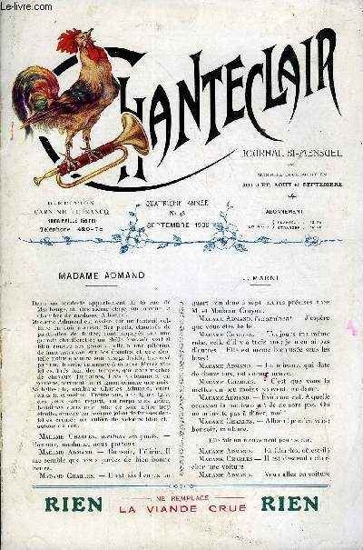 CARNINE LEFRANCQ. SEPTEMBRE 1909. In-12. Broché. Bon état, Couv. convenable, Dos satisfaisant, Intérieur frais. 8 pages. Biographie et caricature hors texte en couleur du professeur Gariel.. . . . Classification Dewey : 70.1-Journaux