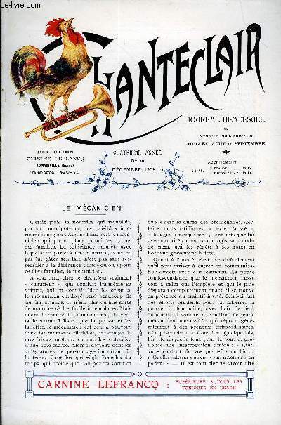 CARNINE LEFRANCQ. DECEMBRE 1909 (1). In-12. Broché. Bon état, Couv. convenable, Dos satisfaisant, Intérieur frais. 8 pages. Biographie et caricature hors texte en couleur du professeur Thoinot.. . . . Classification Dewey : 70.1-Journaux