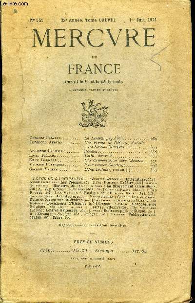 Sommaire : Georges Palante. La Lenteur psychique. .Théodore Aubert. Une Forme de Défense Sociale: les Unions Civiques..Adrienne Lautère. Poèmes.Louis Piérard.Totin, nouvelle. Emile Bernard .. Une Conversation avec Cézanne..Maurice Pottecher.. Pour sauver Carthage..Claude Varèze. L'Indissoluble, roman (I) Classification Dewey : 70.49-Presse illustrée, magazines, revues