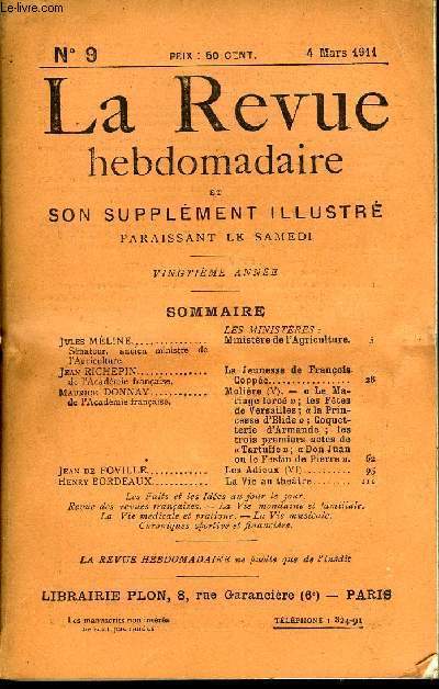 Romans, histoire, voyages et supplément illustré. Sommaire : LES MINISTÈRES :Jules MÊLINE Sénateur, ancien ministre de l’Agriculture. Ministère de l’Agriculture.Jean RICHEPIN de l’Académie française. La Jeunesse de François Goppée.Maurice DONNAY de l’Académie française. Molière (V). — « Le Mariage forcé » ; les Fêtesde Versailles ; « la Princesse d’Elide » ; Coquetterie d’Armande ; les trois premiers actes de « Tartuffe » ; a Don Juan ou le Festin de Pierre ».Jean de FOVILLE. Les Adieux (VI)..Henry BORDEAUX. La Vie au theâtre. Classification Dewey : 70.49-Presse illustrée, magazines, revues
