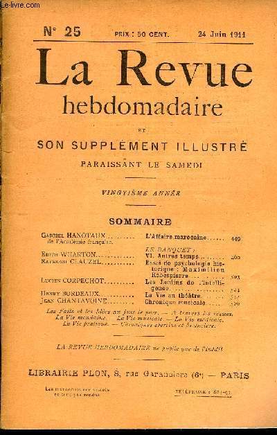 Romans, histoire, voyages et supplément illustré. Sommaire : Gabriel HANOTAUX de l'Académie française. L’Affaire marocaine..LE BANQUET :Edith WHARTON. VI. Autres temps.Raymond CLAUZEL. Essai de psychologie historique : Maximilien RobespierreLucien CORPECHOT.. Les Jardins de l’intelligence..Henry BORDEAUX. La Vie au théâtreJean CHANTAVOINE. Chronique musicale.. Classification Dewey : 70.49-Presse illustrée, magazines, revues