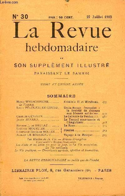 Romans, histoire, voyages et supplément illustré. Sommaire : Henri WELSCHINGER de l’Institut. Frédéric II et Mirabeau.Lucie FÉLIX-FAURE GOYAU. Croix-Rouge française :la Société de secours aux blessés militaires.Charles GÉNIAUX. Le Calvaire de Penlan (II).Jules BÉNARD. Le Tunnel sous-marin et l’Angleterre. Baronne J. de BAULAT. La Rose..Ludovic MOUSTIER / Lieutenant Georges ROLLIN. Poésies.Albert LE BOULICAUT.. Voyage à la Mecque. Classification Dewey : 70.49-Presse illustrée, magazines, revues