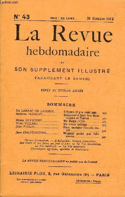 Romans, histoire, voyages et supplément illustré. Sommaire : De LANZAC DE LABORIE. L’Opéra il y a cent ans.. Antoine ALBALAT. Comment il faut lire Montaigne et PascalHenri DAVIGNON. Un Belge (VIII)..Marc VILLERS. Un vieux collège.Jean PHILIP.. Pour enrayer l’exode rural.Jean CHANTAVOINE. Wagner peint par lui-méme.. Classification Dewey : 70.49-Presse illustrée, magazines, revues