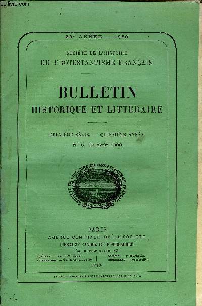 AGENCE CENTRALE DE LA SOCIETE. 15 AOUT 1880. In-12. Broché. Bon état, Couv. convenable, Dos satisfaisant, Intérieur frais. Paginé de 337 à 384.. . . . Classification Dewey : 284-Protestantisme