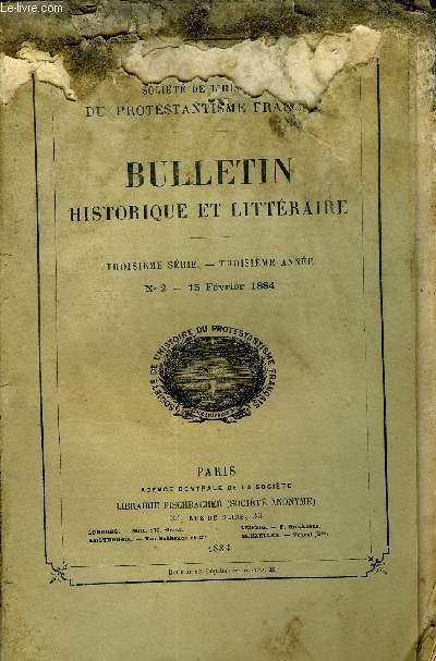 AGENCE CENTRALE DE LA SOCIETE. 15 FEVRIER 1884. In-12. Broché. Bon état, Couv. convenable, Dos satisfaisant, Mouillures. Paginé de 49 à 96.. . . . Classification Dewey : 284-Protestantisme