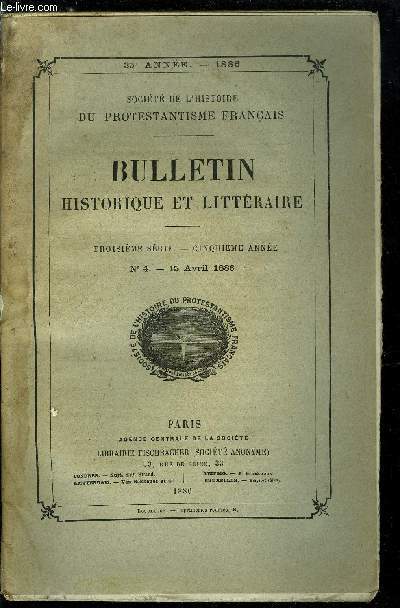 AGENCE CENTRALE DE LA SOCIETE. 15 avril 1886. In-12. Broché. Bon état, Couv. convenable, Dos satisfaisant, Intérieur frais. Paginé de 145 à 191.. . . . Classification Dewey : 284-Protestantisme