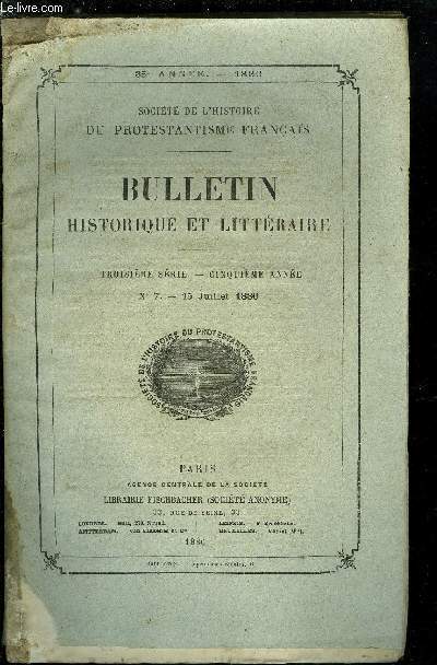 AGENCE CENTRALE DE LA SOCIETE. 15 juillet 1886. In-12. Broché. Bon état, Couv. convenable, Dos satisfaisant, Intérieur frais. Paginé de 289 à 336.. . . . Classification Dewey : 284-Protestantisme