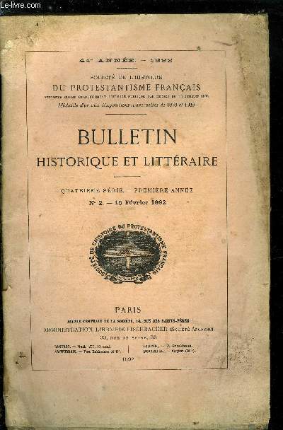 AGENCE CENTRALE DE LA SOCIETE. 15 février 1892. In-12. Broché. Bon état, Couv. convenable, Dos satisfaisant, Intérieur frais. Paginé de 57 à 112.. . . . Classification Dewey : 284-Protestantisme