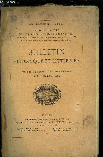 AGENCE CENTRALE DE LA SOCIETE. 15 juillet 1894. In-12. Broché. Bon état, Plats abîmés, Dos satisfaisant, Intérieur frais. Paginé de 337 à 392.. . . . Classification Dewey : 284-Protestantisme