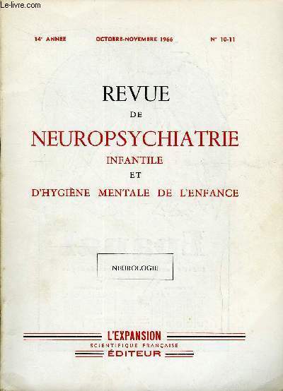 Sommaire : Contribution à l'étude de la dyspraxie faciale, par E. Hasaerts-Van Geertruyden. Conception du développement de l'organisation motrice chez l'enfant. Applications à l'interprétation de l'infirmité motrice cérébrale et de sa rééducation,par JjC. Tabary, G. Tardieu et C. Tardieu..Ataxies cérébelleuses de l'enfant, par C. Martin.Les chorées durables de l'enfant. (Chorées persistantes, chorées chroniques),par M. Ginsbourg..Evolution clinique dans une série de 12 observations de Syndrome de West,par J. Milhau.L'hydrocéphalie non tumorale du jeune enfant et du nourrisson, par L. Mansuy, J. Lecuire, Cl. Lapras, A. Goutelle, J.P. Dechaume, G. Fischer et M. Brunat. Contribution à l'étude de la leucoencéphalite sclérosante subaiguë (type VanBogaert) au Maroc, par Chr. Christozov. Etude clinique, anatomique et électroencéphalographique d'un cas d'anencé-phalie, par F. Cohadon, G. Liorzou, Cl. Vital, P. Loiseau, Y. Mortureux etP. Verger..De l'analyse des troubles de la parole dans le diagnostic neuropsychatrique chez l'enfant (à propos des syndromes pseudo-bulbaires et des états psychotiques),par A. Hatt, C. Chevrié-Muller et C. Koupernik.Indications et résultats de l'hémisphérectomie chez l'enfant, par G. Pertuiset. Choréo-athétose et auto-mutilations, par Lise Moor..Etablissements et organismes de réadaptation : Centres régionaux pour l'Enfanceet l'Adolescence Inadaptée. Revue des Livres..Documentation professionnelle.Informations. Classification Dewey : 619.89-Psychiatrie