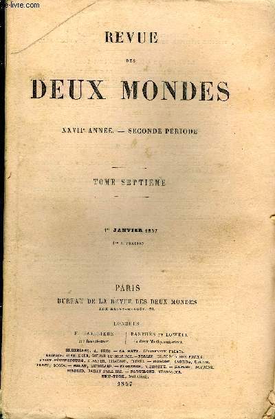 AU BUREAU DE LA REVUE DES DEUX MONDES. 1er JANVIER 1857. In-12. Broché. Bon état, Couv. convenable, Dos satisfaisant, Intérieur frais. Paginé de 1 à 240.. . . . Classification Dewey : 70.49-Presse illustrée, magazines, revues