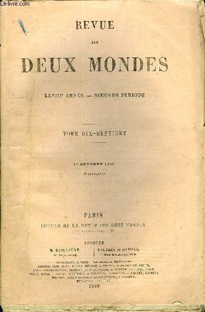 AU BUREAU DE LA REVUE DES DEUX MONDES. 1er OCTOBRE 1858. In-12. Broché. Bon état, Couv. convenable, Dos satisfaisant, Intérieur frais. Paginé de 481 à 720.. . . . Classification Dewey : 70.49-Presse illustrée, magazines, revues