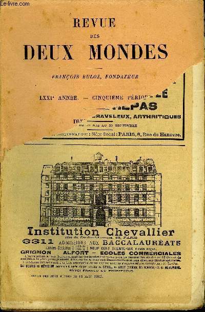 AU BUREAU DE LA REVUE DES DEUX MONDES. 15 MARS 1902. In-12. Broché. Bon état, 1er plat abîmé, Dos satisfaisant, Intérieur frais. Paginé de 241 à 480.. . . . Classification Dewey : 70.49-Presse illustrée, magazines, revues