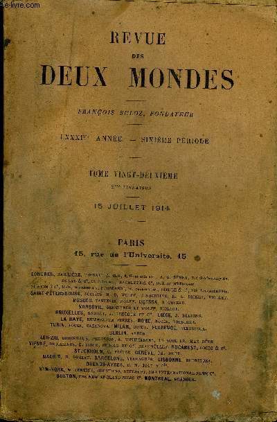 AU BUREAU DE LA REVUE DES DEUX MONDES. 15 JUILLET 1914. In-12. Broché. Bon état, Couv. convenable, Dos satisfaisant, Intérieur frais. Paginé de 241 à 480.. . . . Classification Dewey : 70.49-Presse illustrée, magazines, revues