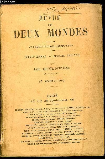 AU BUREAU DE LA REVUE DES DEUX MONDES. 15 AVRIL 1916. In-12. Broché. Bon état, Couv. convenable, Dos satisfaisant, Intérieur frais. Paginé de 721 à 960.. . . . Classification Dewey : 70.49-Presse illustrée, magazines, revues