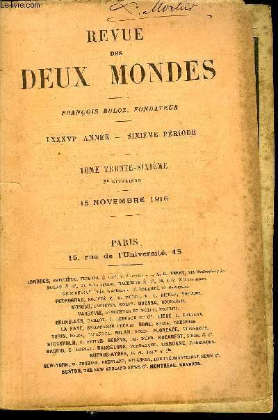 AU BUREAU DE LA REVUE DES DEUX MONDES. 15 NOVEMBRE 1916. In-12. Broché. Bon état, Couv. convenable, Dos satisfaisant, Intérieur frais. Paginé de 241 à 480.. . . . Classification Dewey : 70.49-Presse illustrée, magazines, revues