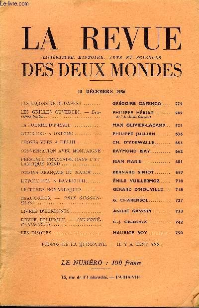 AU BUREAU DE LA REVUE DES DEUX MONDES. 15 DECEMBRE 1956. In-12. Broché. Bon état, Couv. convenable, Dos satisfaisant, Intérieur frais. Paginé de 579 à 761.. . . . Classification Dewey : 70.49-Presse illustrée, magazines, revues