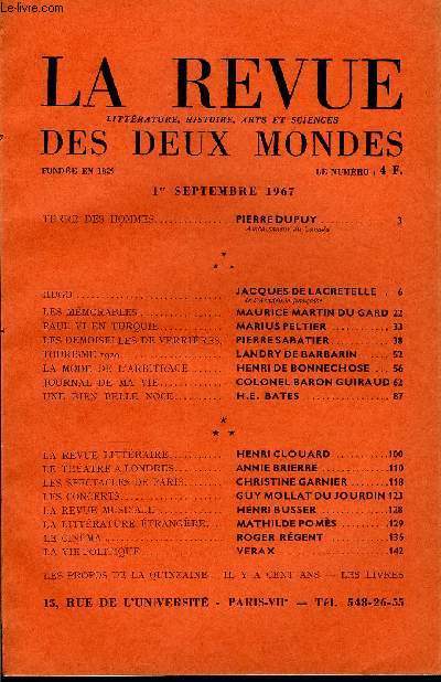 AU BUREAU DE LA REVUE DES DEUX MONDES. 1er SEPTEMBRE 1967. In-12. Broché. Bon état, Couv. convenable, Dos satisfaisant, Intérieur frais. Paginé de 1 à 160.. . . . Classification Dewey : 70.49-Presse illustrée, magazines, revues