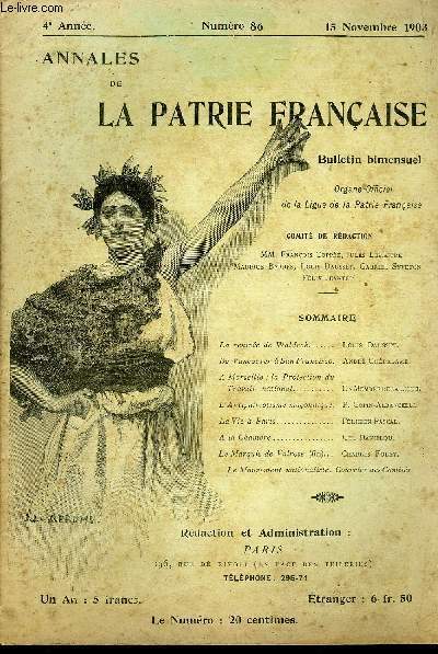 Sommaire :La rentrée de Waldeck..Louis Dauscet.De Vancouver à San Francisco.André Chéradame.A Marseille : la Protection duTravail national.. Un Membre de laLigue.L’Antipatriotisme maçonnique. P. Copin-Albancelli.La Vie à Paris. Félicien Pascal.A la Chambre..Ch. Daniélou.Le Marquis de Valrose (fin). Charles Foley.Le Mouvement nationaliste. Courrier des Comités. Classification Dewey : 70.49-Presse illustrée, magazines, revues