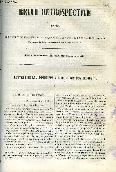 Sommaire : Lettres de Louis Philippe a S. M. le roi des Belges. Dots et dotations - Mémoire. Un candidat et un élu de Paris 1848 - Pétition de M. Raspail a la chambre des députés de 1836 - Lettre de F. Delessert a M. Guizot. Lettre de Louis Philippe au duc de Nemours - Correspondance du roi et de l'amiral Roussin, a l'occasion de la démission de ce ministre de la marine, juillet 1845 Classification Dewey : 70.49-Presse illustrée, magazines, revues