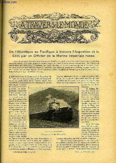 Sommaire : De l'Atlantique au Pacifique a travers l'Argentine et le Chili par un officier de la Marine impériale russe, Les travaux publics à la cote de l'Ivoire, Les progrès de la Marine marchande en Allemagne, Etrange superstition en Hongrie, Le remplacement de la vapeur par l'electricité sur les chemins de fer est-il prochain ? Classification Dewey : 70.49-Presse illustrée, magazines, revues