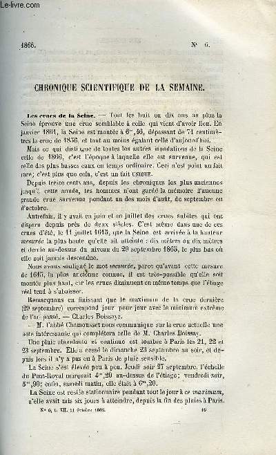 Revue hebdomadaire des sciences et de leurs applications aux arts et a l'industrie. Sommaire : Les crues de la Seine, Nouveau télégraphe autographique, Le vin de Bismark et le sucrage, Revaccination au moyen du vaccin animal, Application du principe de la transparence de l'or et de l'argent, Projet de domestication du coq de bruyère, Conservation des oeufs en Chine Classification Dewey : 70.49-Presse illustrée, magazines, revues