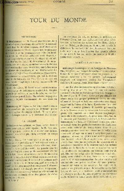 BUREAUX DU COSMOS-LES-MONDES. 28 SEPTEMBRE 1885. In-12. Broché. Bon état, Livré sans Couverture, Dos satisfaisant, Intérieur frais. Paginé de 223 à 250. Texte en colonnes. Quelques illustrations en noir et blanc dans le texte. . . . Classification Dewey : 70.49-Presse illustrée, magazines, revues