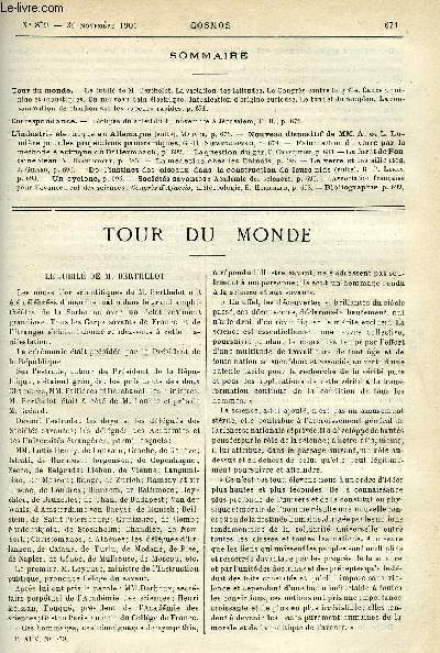 Sommaire : Le jubilé de M. Berthelot, La viaration des litatudes, Le congrès contre la grêle, Le cancer quinine et moustiques, Un nouveau bain électrique, Intoxication d'origine curieuse, Le tunnel du Simplon, La commation de charbon sur les vapeurs rapides Classification Dewey : 70.49-Presse illustrée, magazines, revues