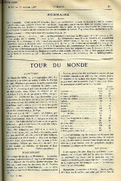 Sommaire : L'éclipse de 1904, Klondyke, Les coups de foudre en Hollande, La transmissibilité de la tuberculose humaine aux animaux, L'alcoolisme en Russie, Respiration des larves des Oestrides, La phosphorescence des myriapodes, Les abeilles au Caucase Classification Dewey : 70.49-Presse illustrée, magazines, revues