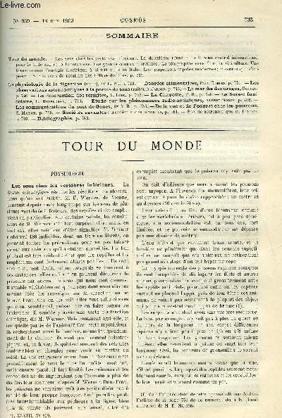 Sommaire : Les sens chez les vertébrés inférieurs, La deuxième réunion du bureau central international pour la lutte contre la tuberculose, Les grands canaux maritimes, La télégraphie sans fil et la viticulture, Une transmission d'énergie électrique a 40 000 volts en Italie Classification Dewey : 70.49-Presse illustrée, magazines, revues