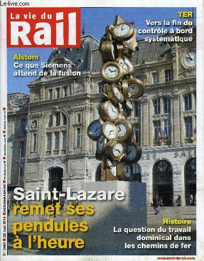 Sommaire : Ile de France - La gare Saint Lazare soigne son entrée, TER - La fin du controleur obligatoire est elle programmée ?, Alstom Transport - Ce que Siemens attend de la fusion, Suisse - Les CFF commandent 29 rames automotrices a Stadler Rail Classification Dewey : 70.49-Presse illustrée, magazines, revues