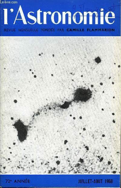 SOCIETE ASTRONOMIQUE DE FRANCE. JUILLET-AOUT 1958. In-12. Broché. Bon état, Couv. convenable, Dos satisfaisant, Intérieur frais. Paginé de 287 à 340. Nombreuses illustrations en noir et blanc dans et hors texte. Annotation sur la couverture.. . . . Classification Dewey : 70.49-Presse illustrée, magazines, revues