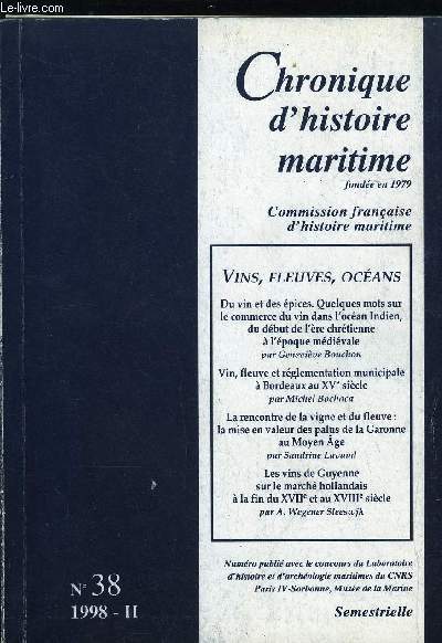 Comission française d'histoire maritime. Sommaire : Du vin et des épices, quelques mots sur le commerce du vin dans l'océan Indien, du début de l'ère chrétienne a l'époque médiévale par Geneviève Bouchon, Vin, fleuve et réglementation municipale a Bordeaux au XVe siècle par Michel Bochaca Classification Dewey : 386-Marine