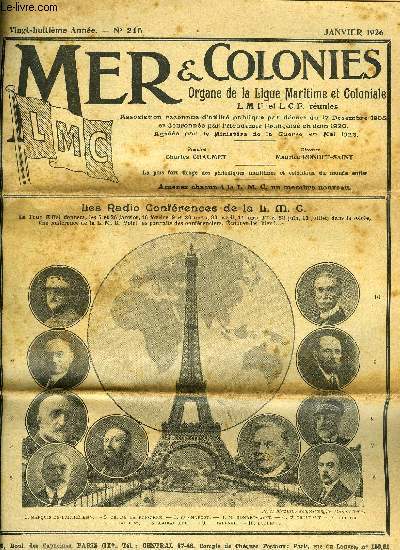 Bureau de la revue. Janvier 1926. In-12. Broché. Bon état, Couv. convenable, Dos satisfaisant, Intérieur frais. 16 pages. Nombreuses photographies en noir et blanc dans et hors texte.. . . . Classification Dewey : 386-Marine