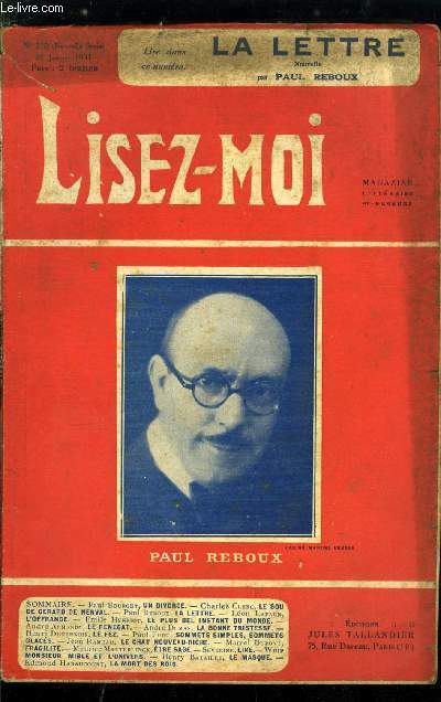 Tallandier. 25 janvier 1931. In-12. Broché. Bon état, Couv. convenable, Dos satisfaisant, Intérieur frais. Paginé de 81 à 160. Texte en colonnes.. . . . Classification Dewey : 840-Littératures des langues romanes. Littérature française